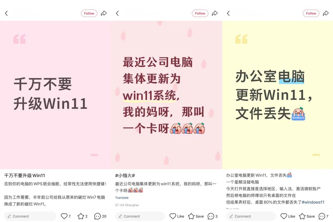 但很多企業表示,升級系統實在是太痛了。Win 11 的兼容不僅讓一些軟件不好使了,要花錢請技術人員重新開發,甚至還得采購配置更高的新電腦。