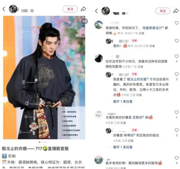 這樣一來,普通觀眾能做的事情也多了起來。**不用等到作品上線,就有網友根據直播當晚鄧為的戲服,分析《風月不相關》服化道的出彩之處,提前慶祝吃上了古裝細糠。**這麼説吧,他們連愛奇藝之後應該出什麼周邊都給想好了。