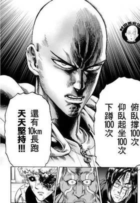 2015年,《一拳超人》動畫風靡全球,主角埼玉的鍛鍊法被無數人爭相模仿。“每天100個俯卧撐、100個仰卧起坐、100個深蹲,再加10公里跑步,堅持三年,你就能變得像我一樣強”。