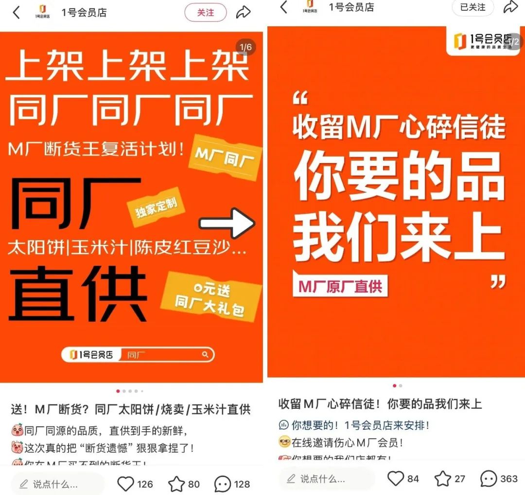 還有的會員店則直接打出了“收留M廠心碎信徒”的口號,京東旗下會員制超市一號會員店直接官方下場,推出了“M廠同廠直供”的計劃,有用户在評論區直接在線許願山姆下架產品,官方復刻同款。