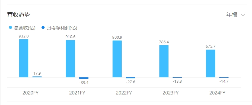 2021年的永輝,交出了一份觸目驚心的成績單:虧損39.44億元,創歷史上最大年度的虧損記錄。自此,永輝開啓了連續四年虧損的窘狀,營收也連年下降,從當初的近千億元滑落至如今的675.7億元。