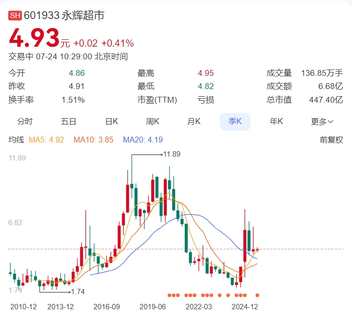 但放在5年前,整個零售商超行業裏,市場的光環恐怕要聚焦在永輝和大潤發身上。