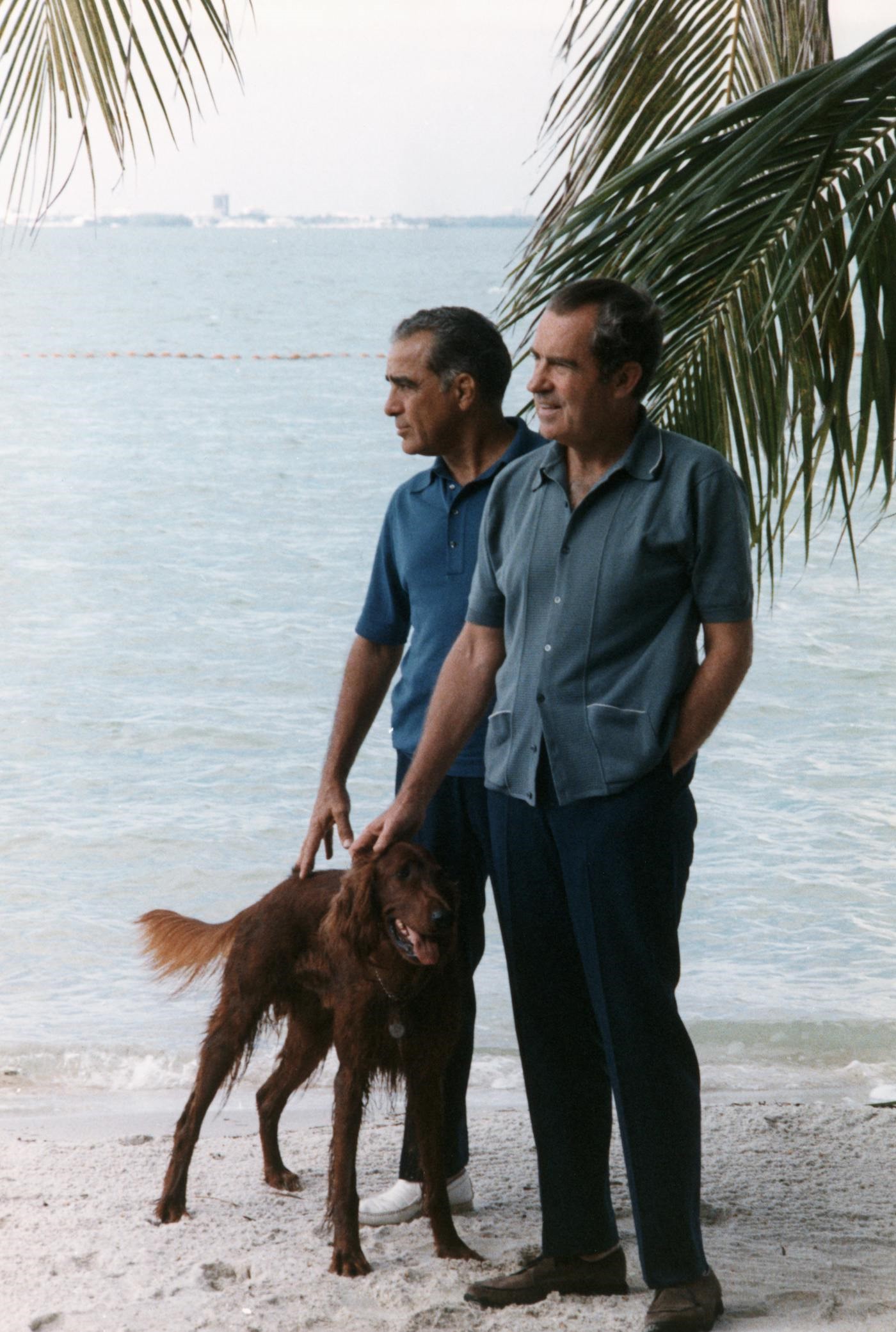 1971年,佛羅里達州比斯坎島(Key Biscayne),理查德·尼克松與其千萬富豪好友貝比·雷博佐。圖源:CORBIS/GETTY