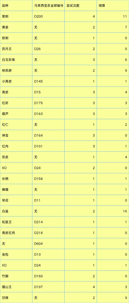 每次活動中,我們都會讓大家為自己最喜歡的一種榴蓮投票,票選結果如下。