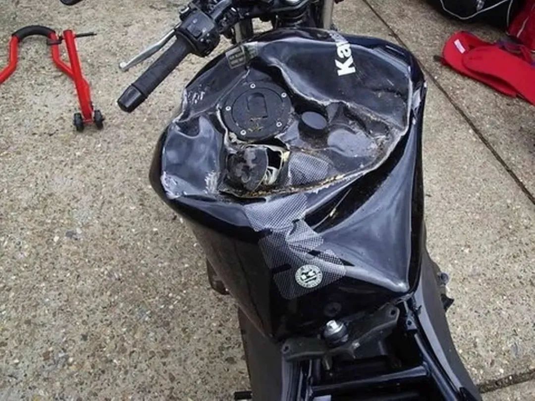 沃倫駕駛着圖中摩托車狠狠撞向樹幹(圖片來源:Press people)