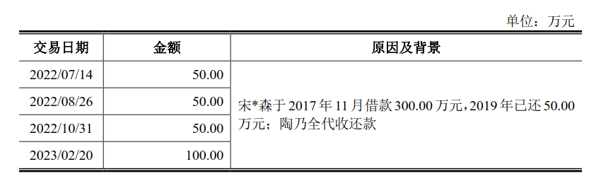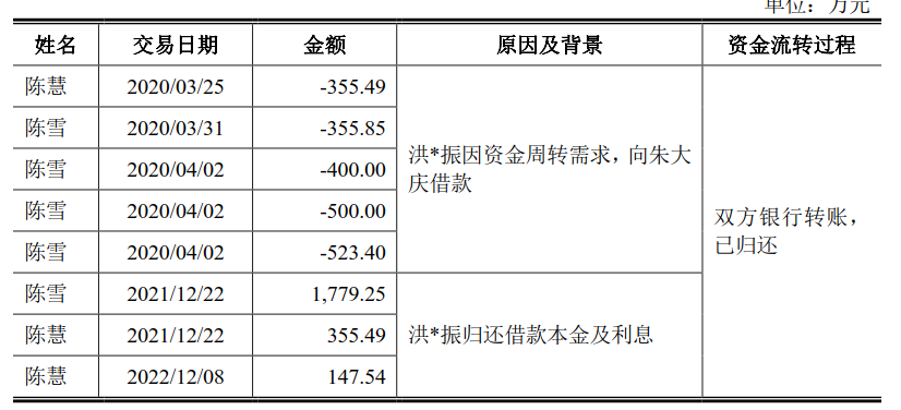 報告期內,朱大慶與其兄長朱寶雲之配偶王桂英、朱寶雲之子朱興榮存在大額資金往來。朱寶雲與王桂英共同經營從事機械製造的晶玖汽配等企業,日常經營中存在對外籌措資金緩解資金流動性緊張的需求。