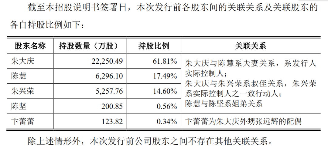據招股書,朱大慶與陳慧系夫妻關係,系天富龍實際控制人;朱大慶與朱興榮系叔侄關係,朱興榮系實際控制人之一致行動人。