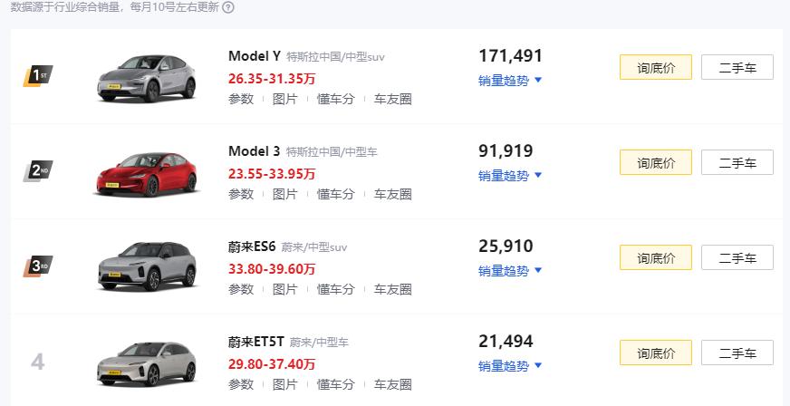 和直接在原品牌上推出產品做價格下探不同,蔚來做的就是子品牌矩陣。蔚來品牌保持原有的高端定位和市場份額。在30萬元以上的純電動車型,蔚來ES6和蔚來ET5T近半年的銷量依然是新勢力領先。