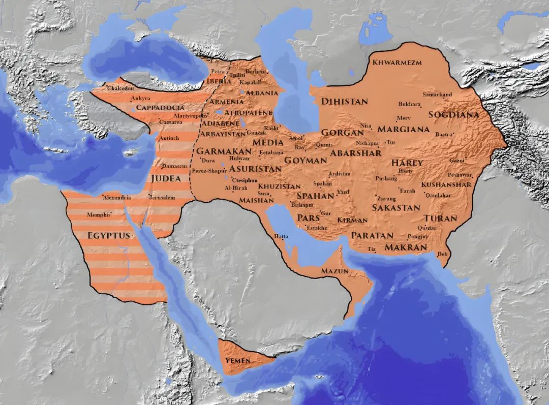 今天我們不做具體的歷史研討,大家知道這個波斯帝國曾經很大就行了。另外我們看一看那個薩珊帝國,也很大。把阿拉伯半島沿海邊上基本上都控制了。但是伊朗想重建波斯帝國、薩珊帝國的想法。在現在的國際形勢下是不現實的。