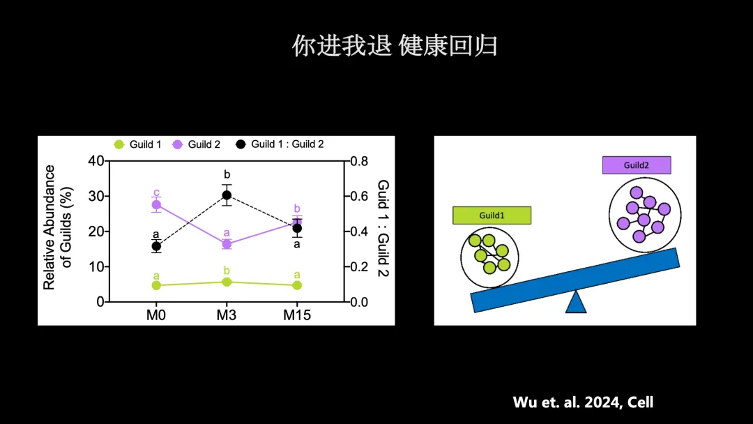 現在比較有意思的是,另外一個和基石功能羣競爭的,那個功能羣裏邊,有很多條件致病菌,它和傳統意義上的有害菌是完全不一樣的。