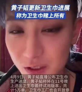 再來看看黃子韜成立不久的衞生巾品牌的銷售戰績,其上線後的首場帶貨,開播僅30分鐘,50萬單衞生巾組合套裝便宣告售罄,單場直播GMV超4000萬元;