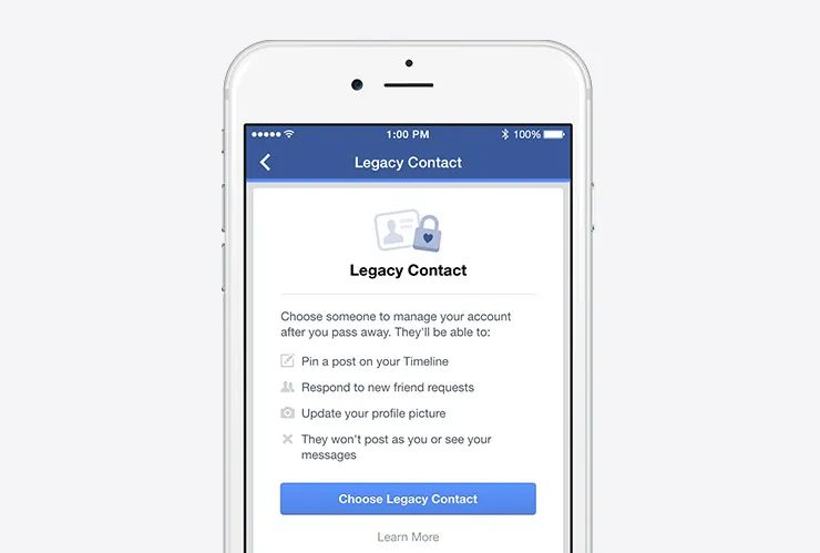 逝者生前還可以在用户賬號設置中,指定家屬或18歲以上的Facebook好友作為legacy contact,負責控制“Tributes”(追思牆),移除令人不適的圖文內容。