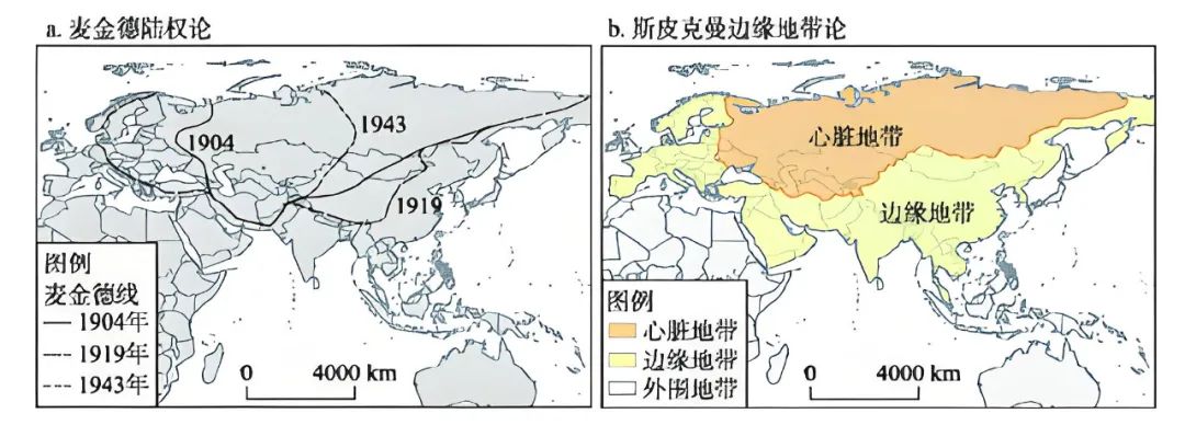 英國人麥金德提出的陸權論。認為擁有歐亞大陸的心臟地帶,最有利於成為歐亞大陸的領導者。他有一句經典的表述。“誰統治了東歐,誰就能控制大陸心臟地帶。誰控制大陸心臟地帶,誰就能控制世界島即歐亞大陸。誰控制了世界島,誰就能控制整個世界”。現在看,這個理論只能適應特定的歷史條件。其原因是歐亞大陸中心,過去生存的是遊牧民族,他們擁有馬匹。是天生的騎兵,因此擁有軍事上的天然優勢。之後鐵路的出現,更有利於溝通歐亞大陸和開發歐亞大陸腹地。而這個時候。內河航運、海運、空運等物流手段,都不如鐵路有經濟性。