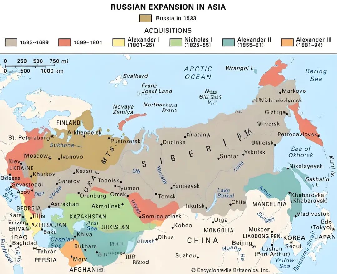 後面建立的羅曼諾夫王朝,王室長期和英國、德國上層通婚。在公元15世紀之後,依靠西歐傳過來的軍事科技。推翻了蒙古人的統治。大殺四方,國土一度膨脹到2288萬平方公里。這就是它的發家史。