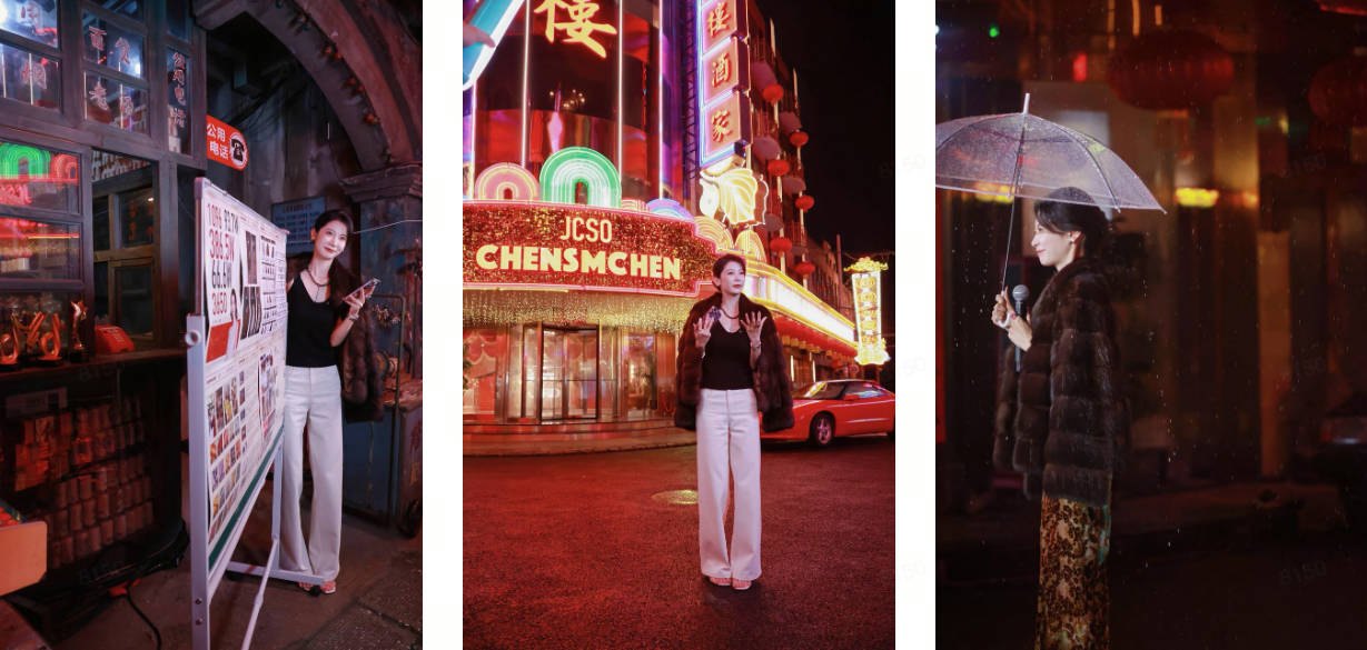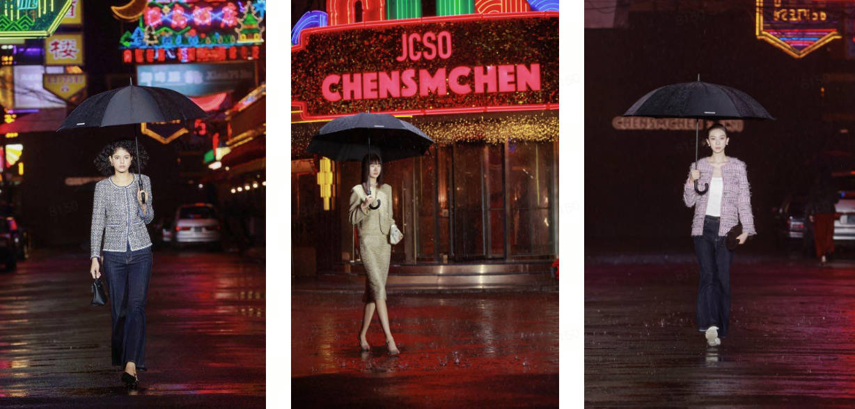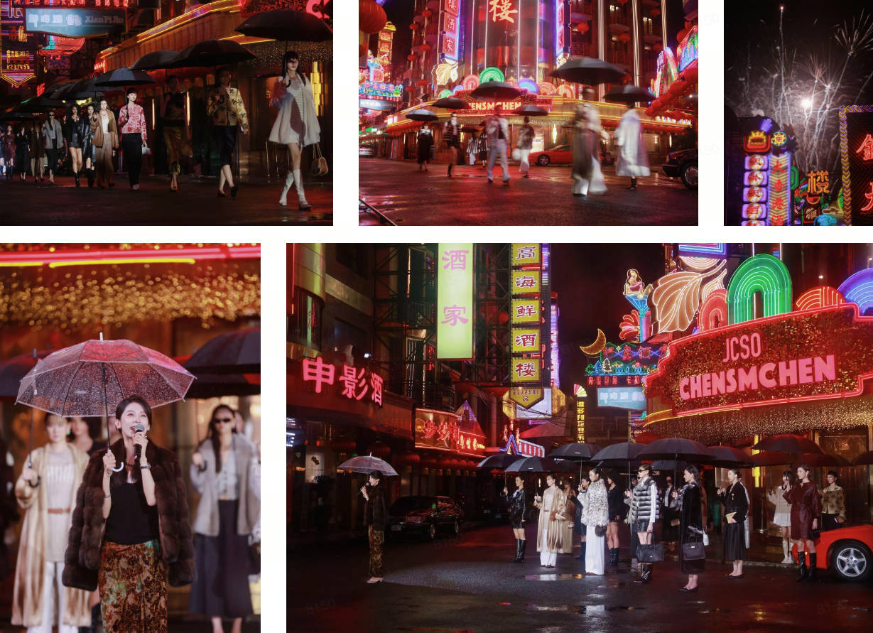 2025年7月18日晚,一場不期而遇的夏雨,為上海影視基地黃河路披上朦朧光影。在這《繁花》故事的原點,井唐控股高端女裝品牌陳什麼陳CHENSMCHEN&JCSO聯合抖音電商以一場“繁華大秀”,在霓虹與雨絲交織的獨特氛圍中,隆重啓幕品牌成立三週年慶典暨2025秋冬系列新品發佈。雨幕非但未減風采,更讓華服與上海復古街巷碰撞出別樣意境——皮草的雍容、皮衣的颯爽、小香風的精緻與宋錦的東方氣韻,在濕漉漉的黃河路上更顯張力,完美詮釋品牌“發現美、傳遞美、創造美”的核心理念。