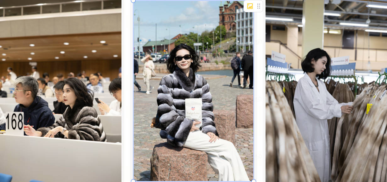 芬蘭皮草殿堂之行: 深入芬蘭saga賣行,不僅親歷頂級水貂皮的嚴苛篩選過程,更在拍賣行與全球一線奢牌共同競拍優質原材料,彰顯中國品牌對原材料的極致追求。團隊也在今年6月的皮草拍賣中,拿下多種稀有貂皮,為高品質水貂成衣做足優質原材料儲備,是其作為“線上TOP1皮草品牌”的實力背書。