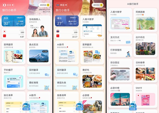 馬蜂窩首次公開的重磅產品“AI旅行助手”APP,可以看作是目的地“專屬管家”。應用直擊自由行痛點,用户在左上角選擇相應目的地,即可實現單個目的地旅行全流程覆蓋。從行前的簽證指南、必備物品清單、當地最新資訊、電話卡、入境卡等準備工作;到行中的即時交通換乘、餐廳預訂、多語言翻譯及菜單翻譯、購物退税攻略;再到挖掘在地小眾玩法,如動漫迷專屬的“聖地巡禮”、本地人私藏的Citywalk路線等深度體驗環節,真正做到打破邊界,在同一APP中即可獲得全鏈條服務,省去多個APP來回切換的繁瑣環節。