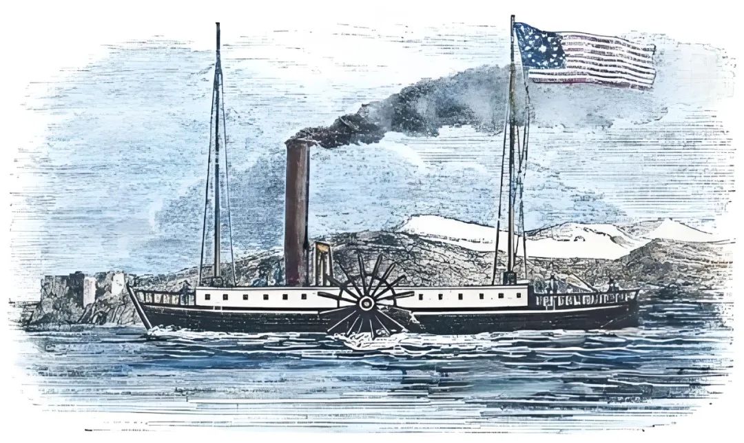 一八零七年,美國人富爾頓建成往復式蒸汽機船。