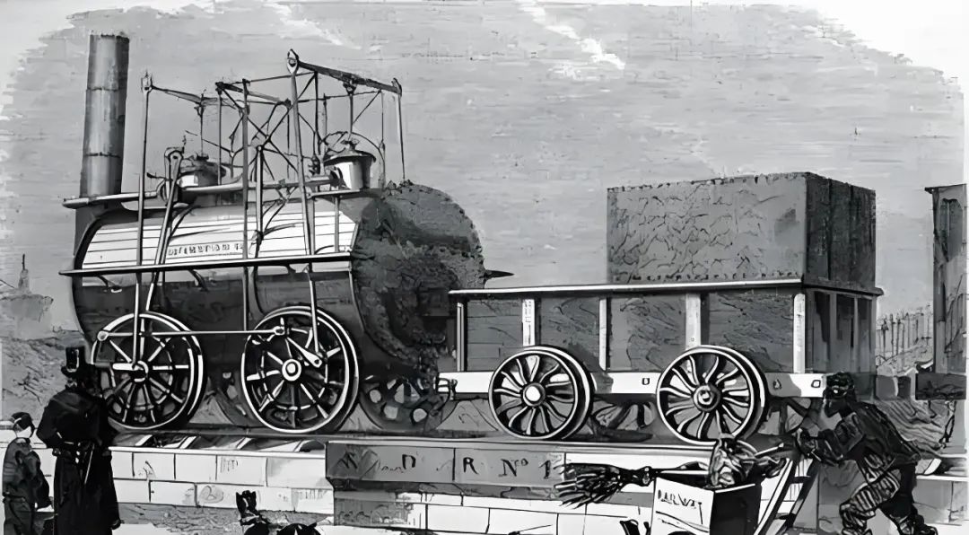 一八二五年,英國人喬治-斯蒂芬森將蒸汽汽車應用於鐵路。