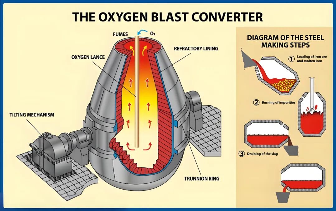 分別是一八五六年亨利-貝塞麥發明的轉爐鍊鋼法鍊鋼。