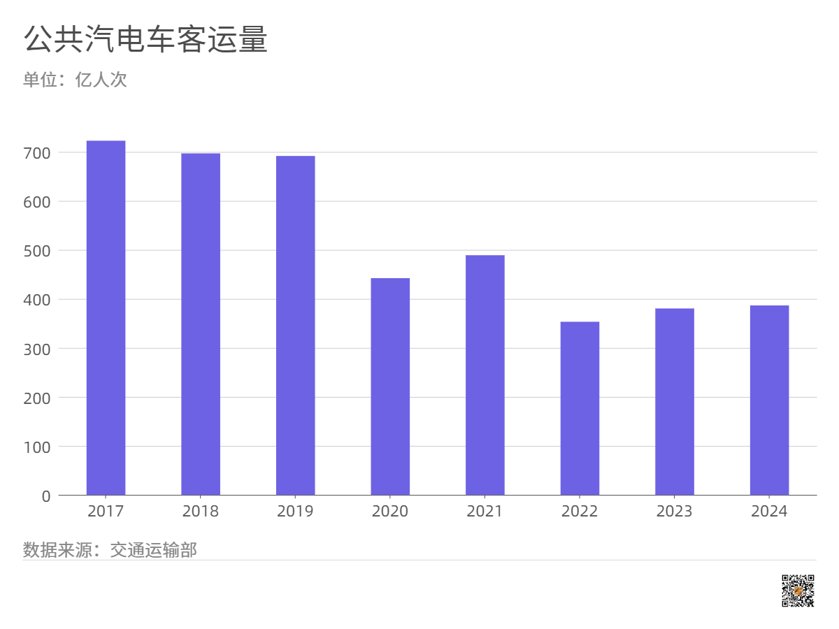 與前些年相比,全國範圍內的公共汽電車客運量簡直可以説是腰斬。