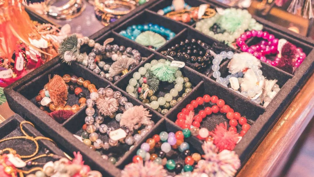 在這個過程中,商家的角色也逐漸發生轉變。他們不再是一口氣囤滿SKU的批發商,而是成為像拼樂高一樣“組貨”的搭配師:通過對多材質的採買,最後完成個性化搭配。如一串珠子裏可能混搭多種材質、多種顏色,甚至融入不同文化符號。