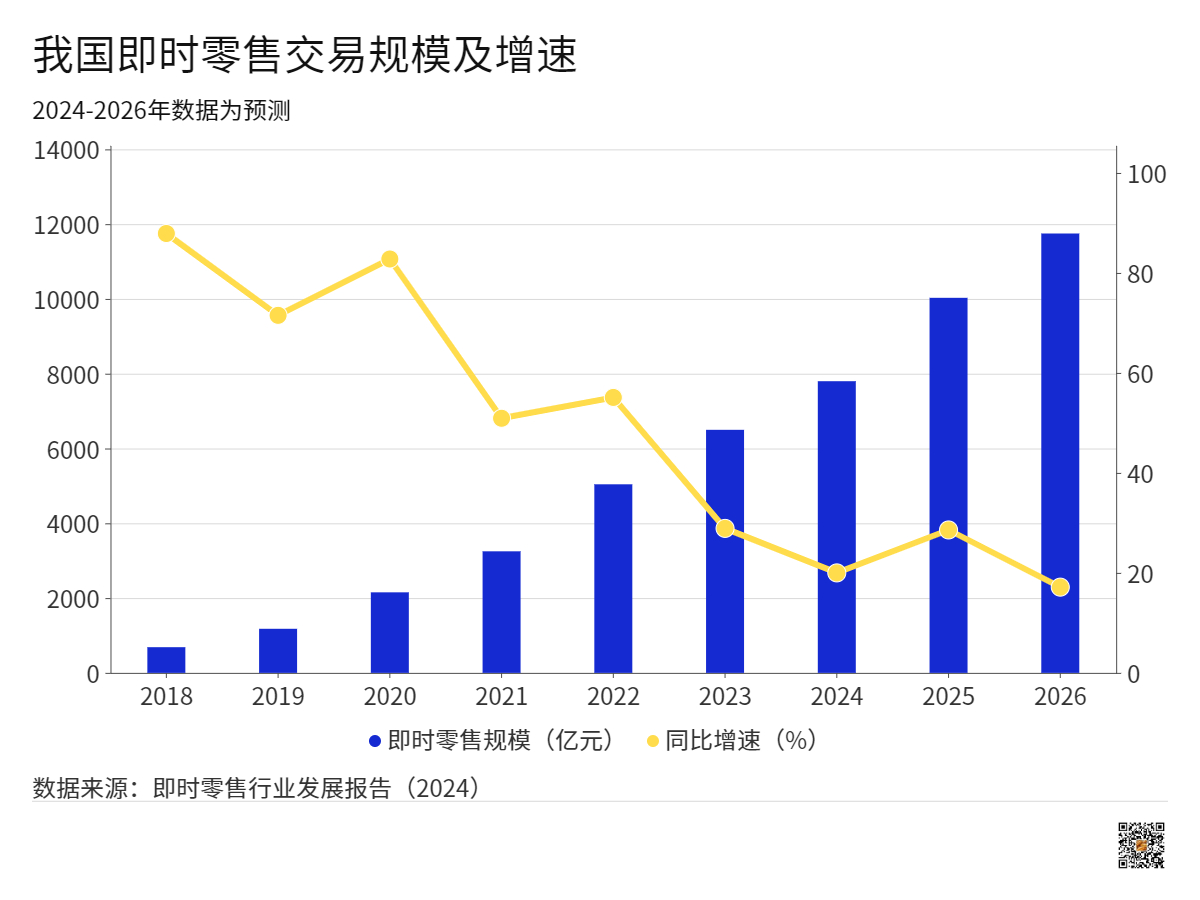 《即時零售行業發展報告(2024)》的預測增速,恐怕因即時零售的瘋狂快進,而提早打出大結局了。