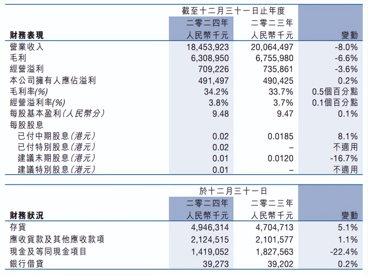 根據財報,寶勝2024年營業收入同比減少8.0%至184.54億元,毛利同比減少6.6%至63.09億元,經營溢利同比減少3.6%至7.09億元。