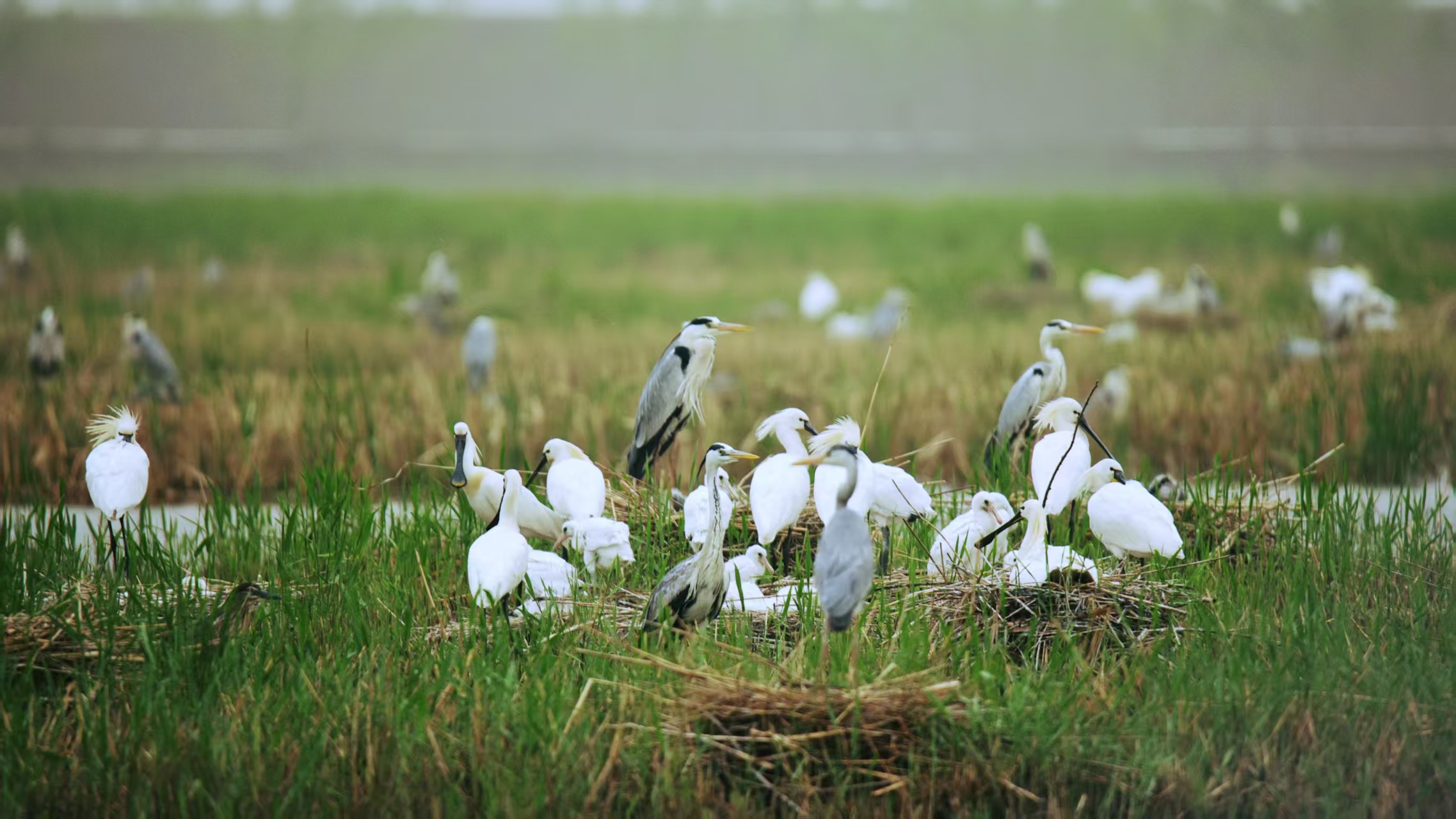 千鶴島是鳥兒的天堂,是眾多珍稀鳥類的棲息地和繁殖地。每年春秋兩季,這裏便成了鳥的海洋,成千上萬只候鳥從遙遠的南方飛來,在這裏停歇、覓食、繁衍後代。國家一級保護動物東方白鸛,體態優雅,潔白的羽毛在陽光下閃耀着聖潔的光芒,它們或在淺灘上悠閒踱步,或在天空中振翅翱翔,為這片濕地增添了幾分靈動之美。此外,還有白鷺、灰鶴、鸕鷀等各種鳥類,它們或成羣結隊地在空中盤旋,或在水面上嬉戲玩耍,或在枝頭棲息鳴叫,構成了一幅萬鳥齊飛的壯觀畫面。當你乘坐遊船穿梭在濕地中,鳥兒們會在你的頭頂盤旋,彷彿在歡迎你的到來,讓你近距離感受到大自然的生機與活力。