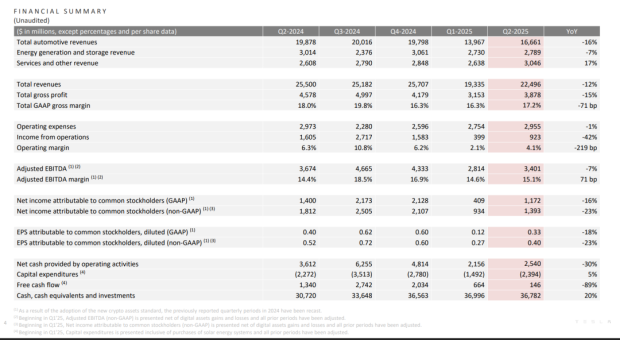 第二季度,特斯拉實現收入 225 億美元,同比減少 12%,但環比一季度增長了 16%;