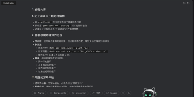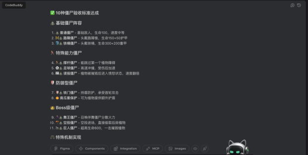 本次測評其實沒有把焦點放到 CodeBuddy 的各種不同功能展示上,更多在於完成《 植物大戰殭屍 》“ 無限生存模式 ” 的過程中,CodeBuddy 給我帶來的體驗大部分時候都是無感的、絲滑的,確實全程沒有寫一行代碼,並且把《 植物大戰殭屍 》的開發推到了新的複雜度。