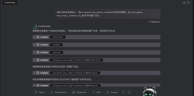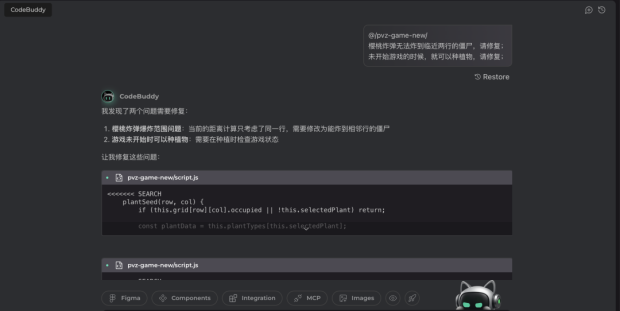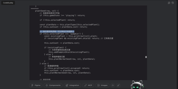 我要求 CodeBuddy 在植物增強版的基礎上,融合殭屍增強版的代碼。