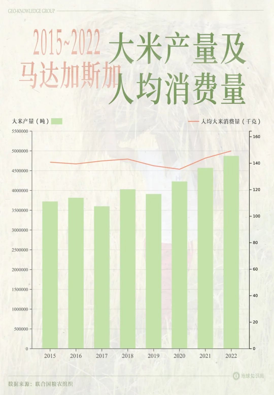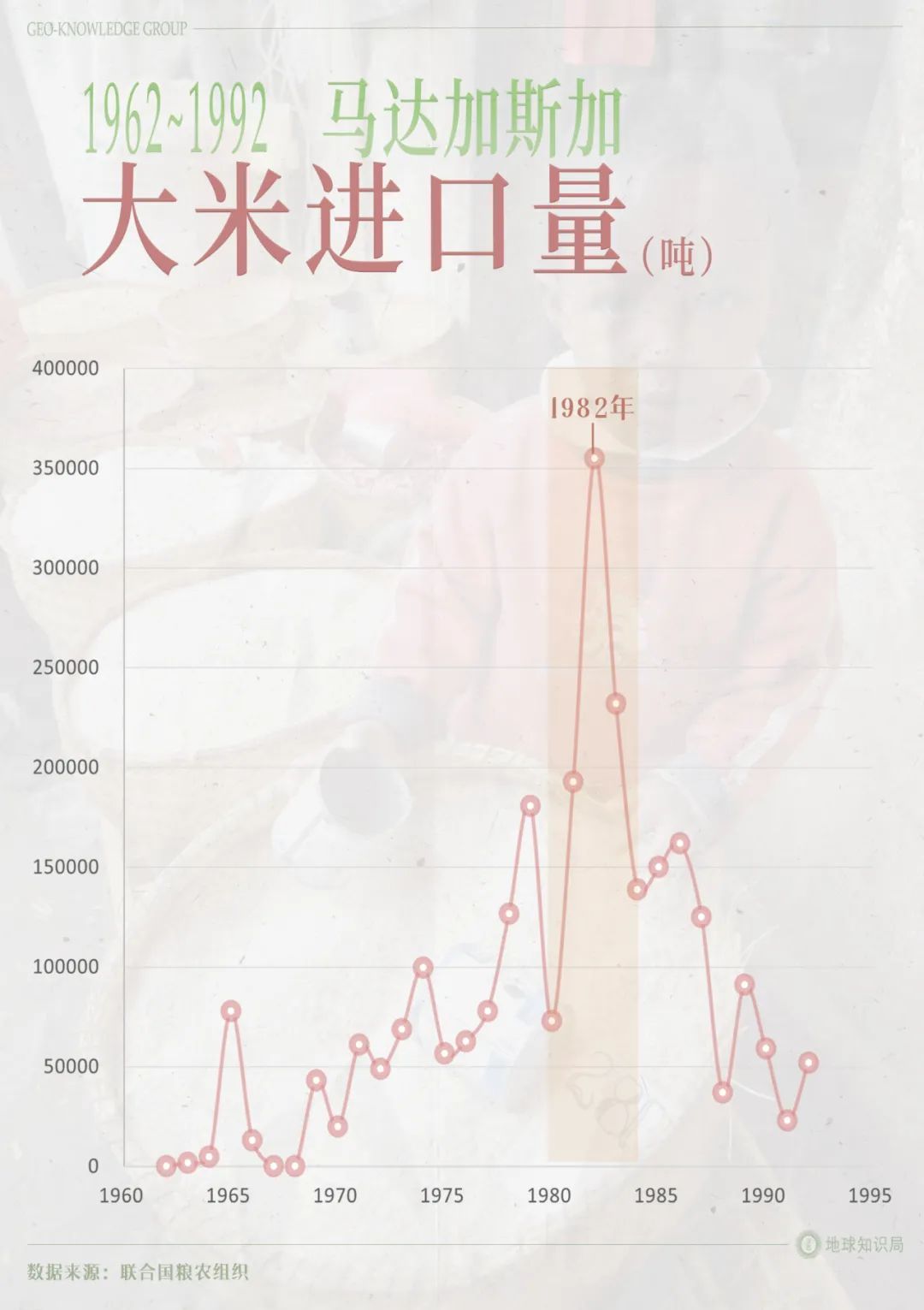 1982年,馬達加斯加進口了約35萬噸的大米,以滿足其國內需要,對於這個經濟落後的國家來説,是一筆沉重的負擔。