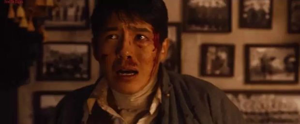 郵差阿昌(劉昊然飾)在混亂中僥倖逃生,背後郵包上赫然一個冒着青煙的彈孔。恐懼,成為這座淪陷之城的底色。
