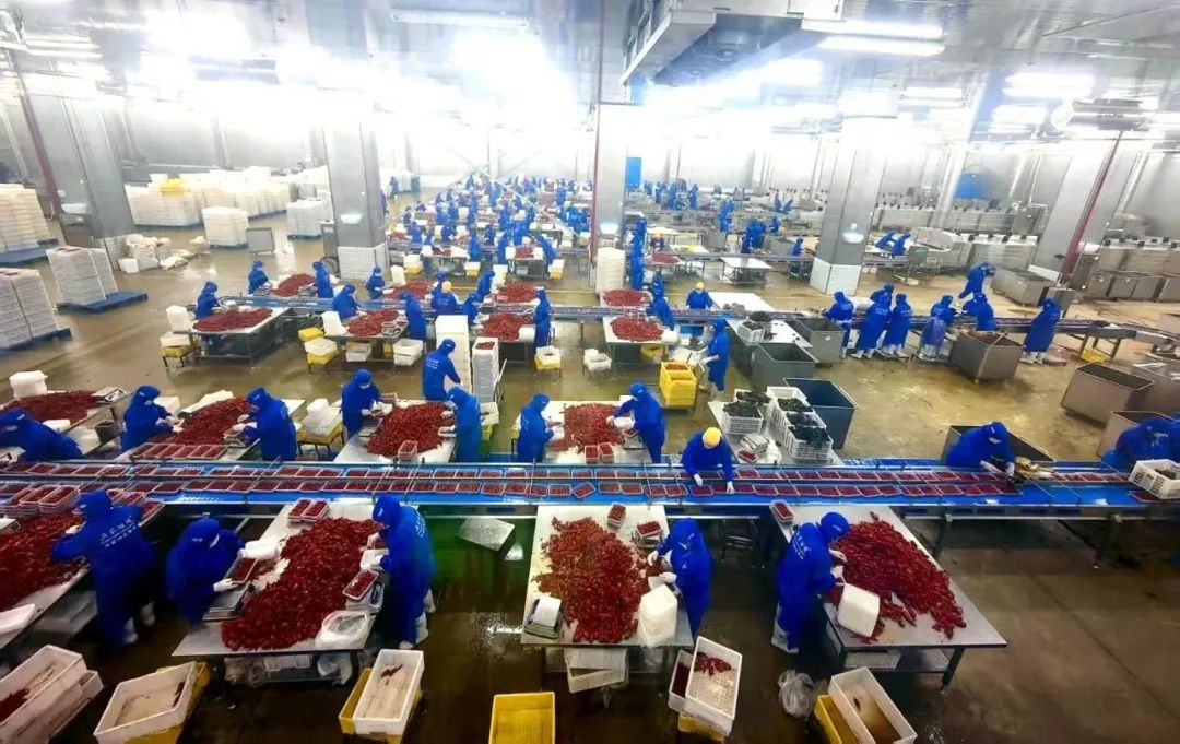凌晨3點,天還未亮,南縣的村民們早已走進稻蝦田。頭燈掃過水麪,驚起一片紅甲翻飛。只見他們熟練地抄起蝦籠捕撈,不一會兒,網中就有了不少活蹦亂跳的小龍蝦。天亮後,這批新起的小龍蝦搭乘冷鏈專車被送至順祥食品生產車間,短短幾個小時,便完成了一場新鮮、美味的極速傳送。