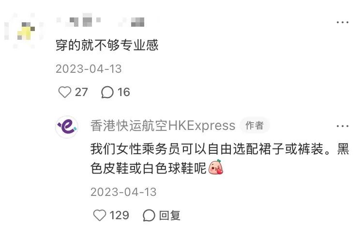 在一片叫好聲中,也有人評價去高跟鞋、去裙子的空姐“不夠正式”“沒有專業感”。