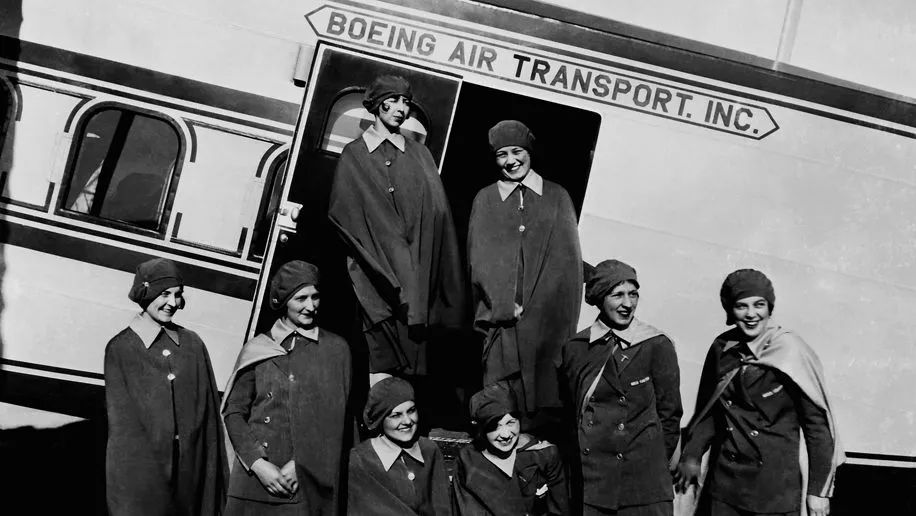 1930年5月15日,波音航空的波音80A客機上,八名女性身着統一的深綠色制服,第一次完成了她們的空乘任務:除了服侍用餐、打掃廁所、安撫乘客外,她們還要用扳手和螺絲刀將乘客的座椅固定在機艙的地板上,幫忙給飛機加油,協助將飛機推進倉庫。