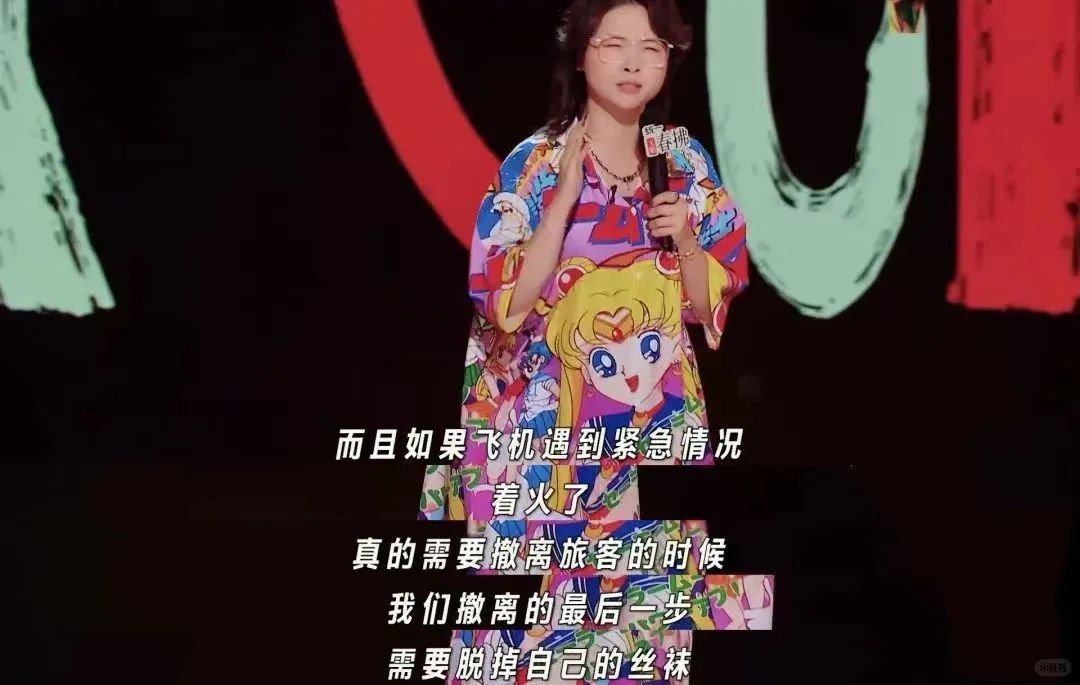 近期熱播的《喜劇之王單口季 第二季》中,曾經的空姐——脱口秀演員嘻哈,用段子的形式講着空姐職業中的種種不合理。她非常不理解,為什麼在那麼複雜的高空環境下工作,還要穿短裙、絲襪、高跟鞋,就不能穿褲子嗎?