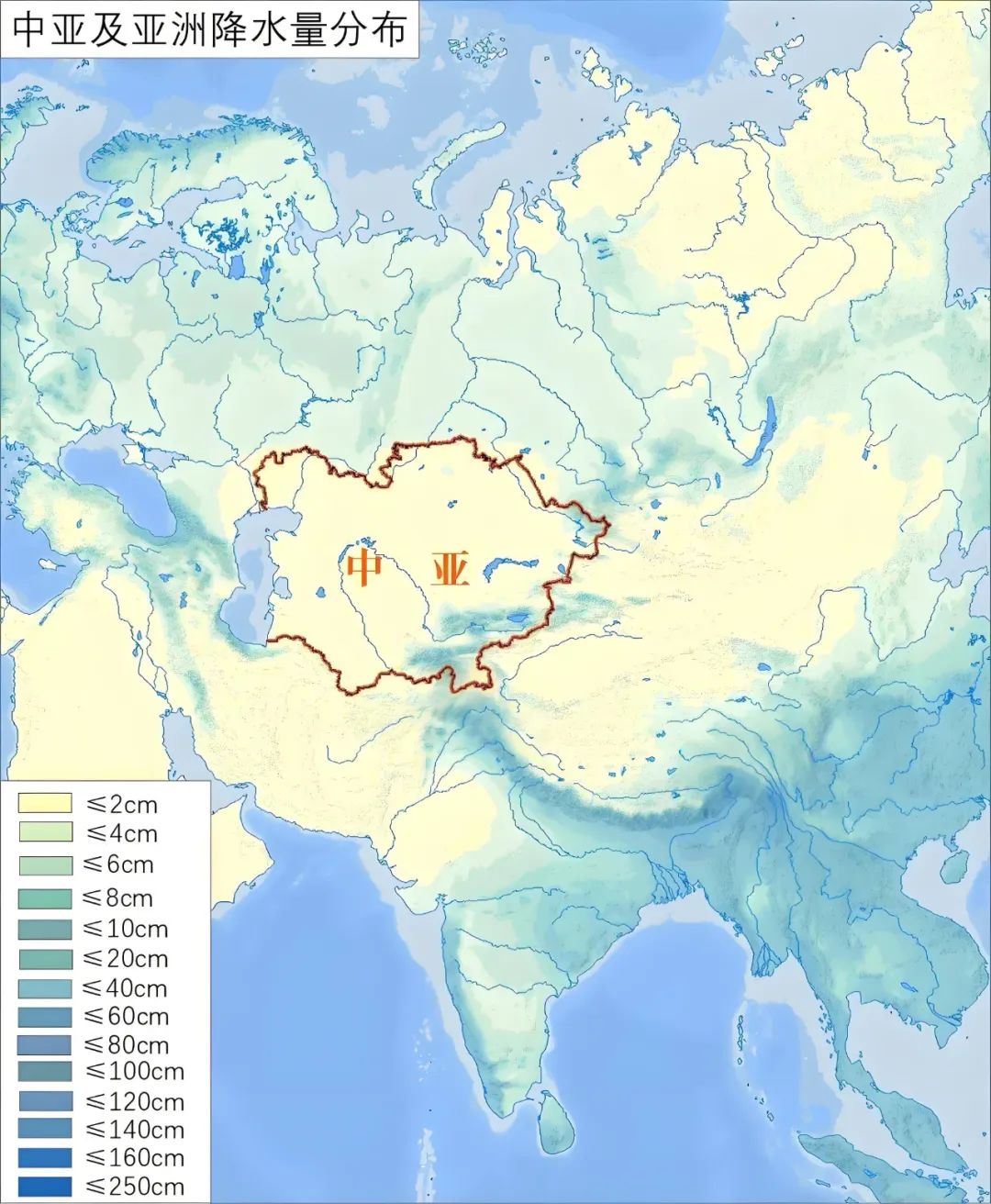 此外,我們可以清晰看出鵝羅斯與哈薩克國境線就是400毫米等降水量線。這其實就是進行農耕所需要的最低降水條件。
