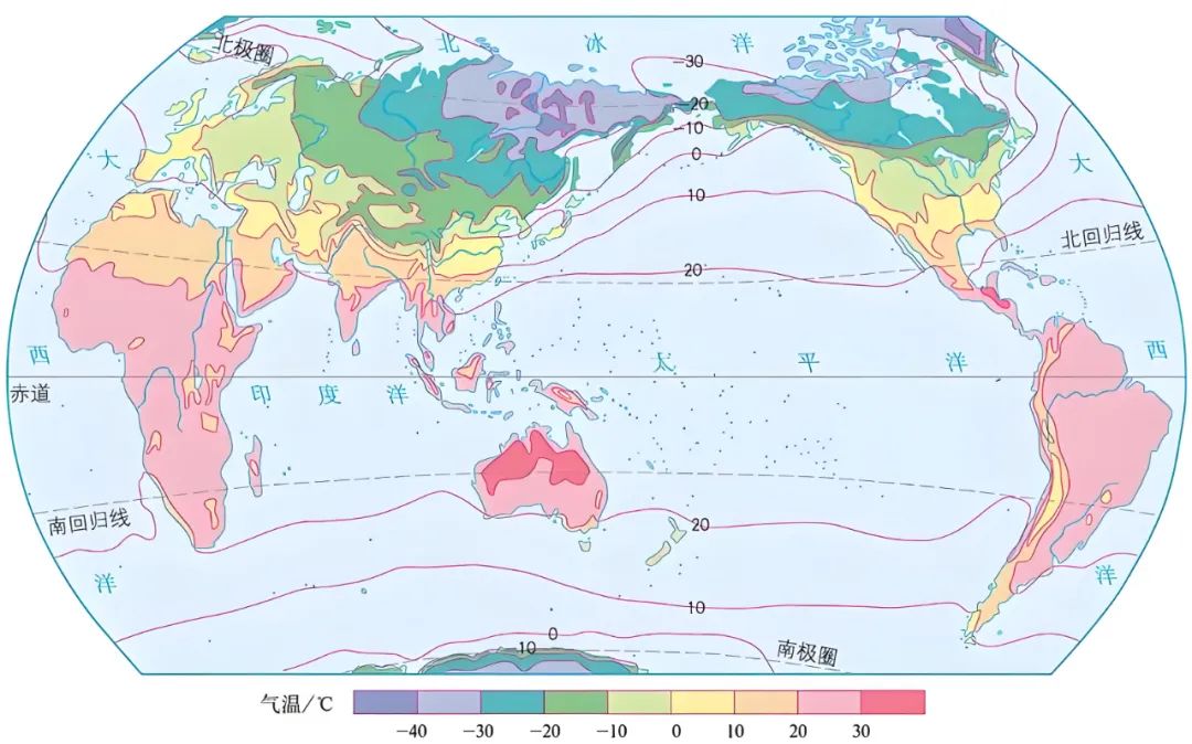 我們看下面這張圖是全球1月平均氣温,就可以發現一個特點。
