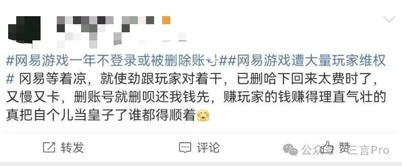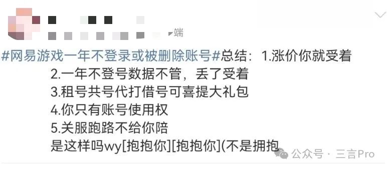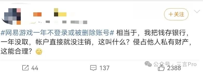 “一年不登錄賬號或被刪”?網易遊戲被罵上熱搜,網友:刪號前請先退款_風聞