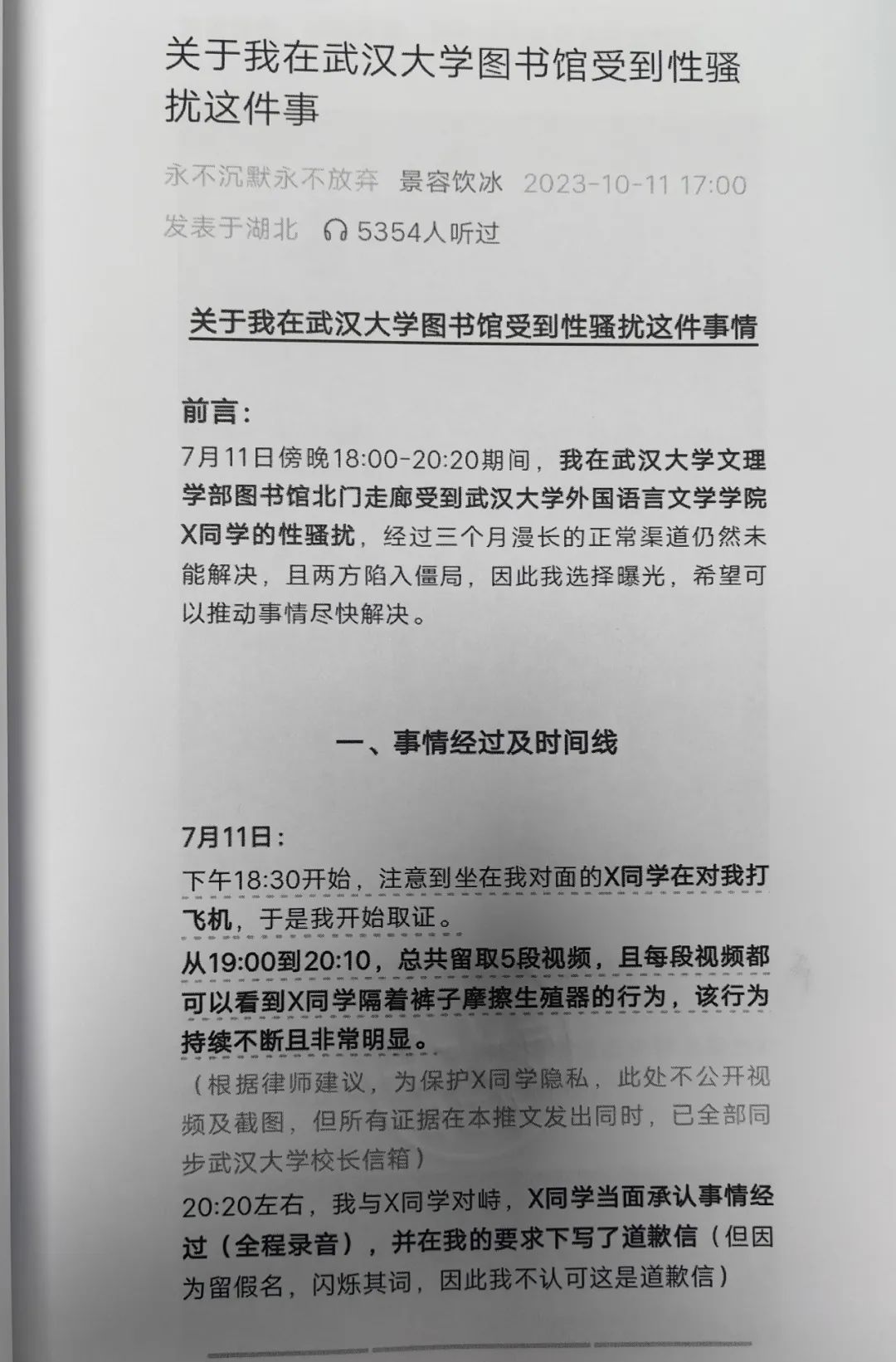 武大圖書館性騷擾事件一審宣判!男生患PTSD,女生精神崩潰_風聞