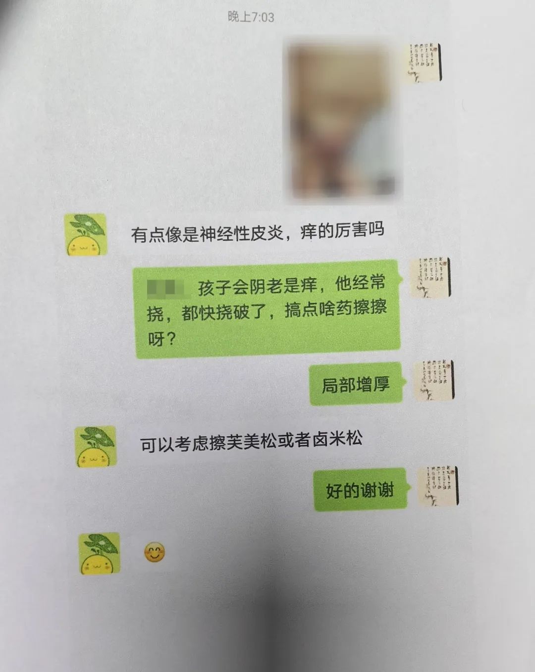 肖母提供了2020年之後,與醫護人員、藥店、友人詢問濕疹治療的聊天記錄。事發當天中午,她曾委託來做客的友人順便到藥店買“愛寧達”藥膏。肖某某的父親向不同的醫生諮詢,發過肖某某隱私部位的照片,説肖某某的會陰處、睾丸部“老是癢,快撓破了”,詢問過是否要替換“愛寧達”。