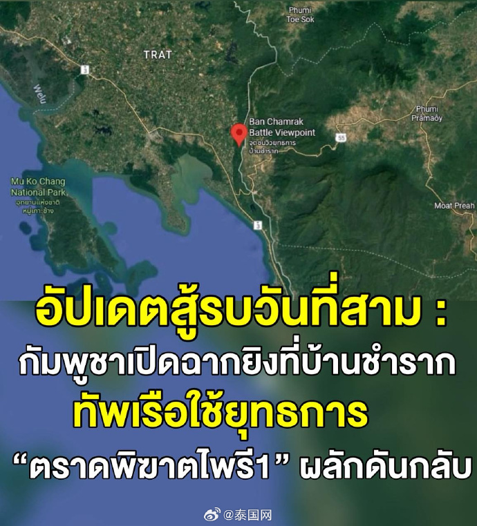 泰媒7月26日上午最新報道消息,為應對柬埔寨部隊在邊境的進攻,泰國於7月26日正式啓動代號為“Trat Pikhat Pairee 1”(意為“達叻驅敵一號”)的軍事行動,派遣海軍部隊反擊柬方入侵,並加強邊境安全防線,捍衞國家主權。