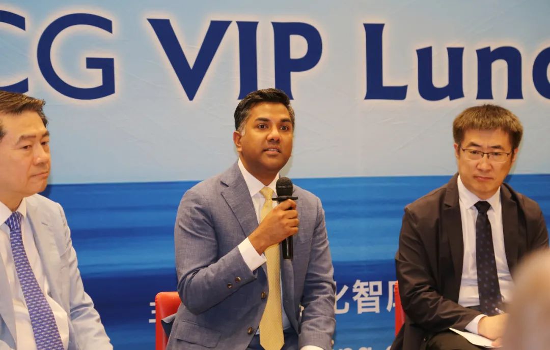 午餐會開場致辭環節由CCG副秘書長張偉主持。他首先對各界嘉賓出席本次CCG名家對話午餐會表示誠摯歡迎,強調本次活動聚焦加強貿易與投資、共建韌性產業鏈與供應鏈的重要議題。他表示,期待各位演講嘉賓分享寶貴見解,堅信他們的真知灼見與專業經驗將為本次討論注入深刻洞見,極大地豐富會議內容。