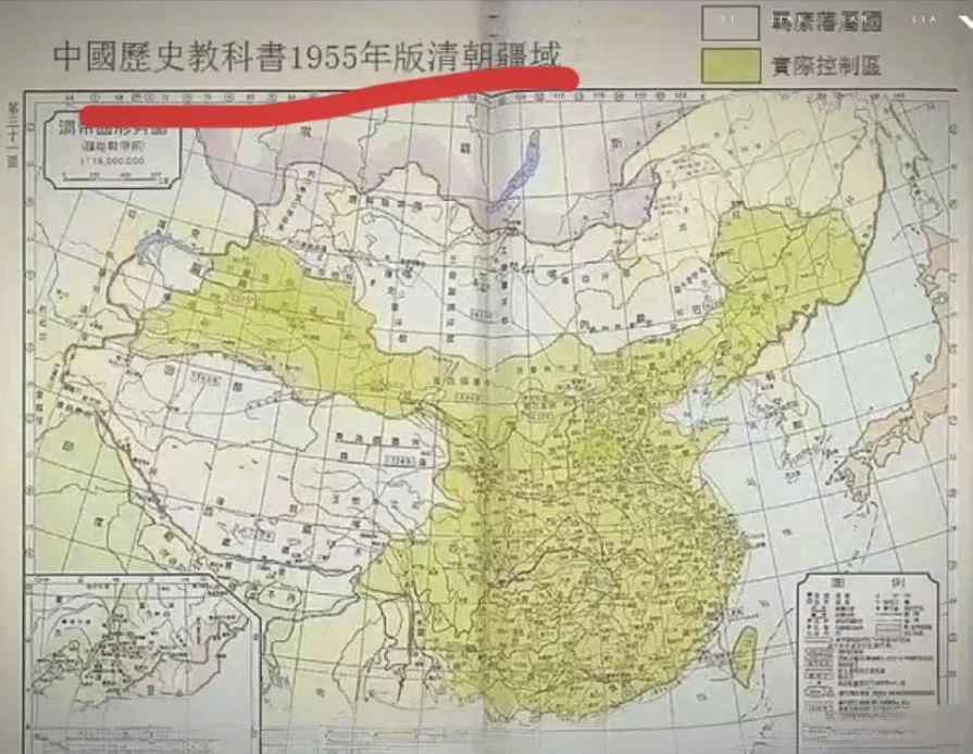 下面是網上流傳的新中國的1955年中國歷史教科書清朝疆域,