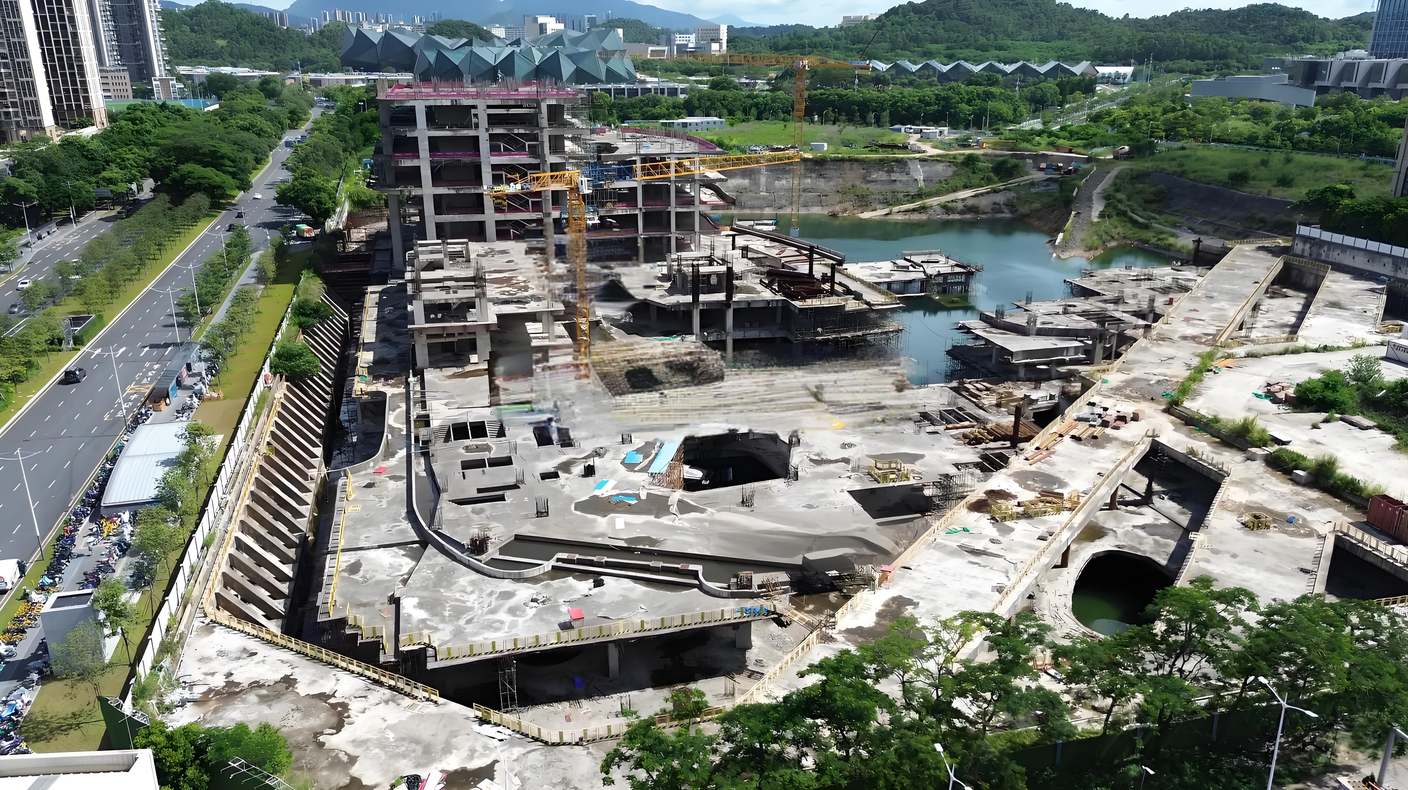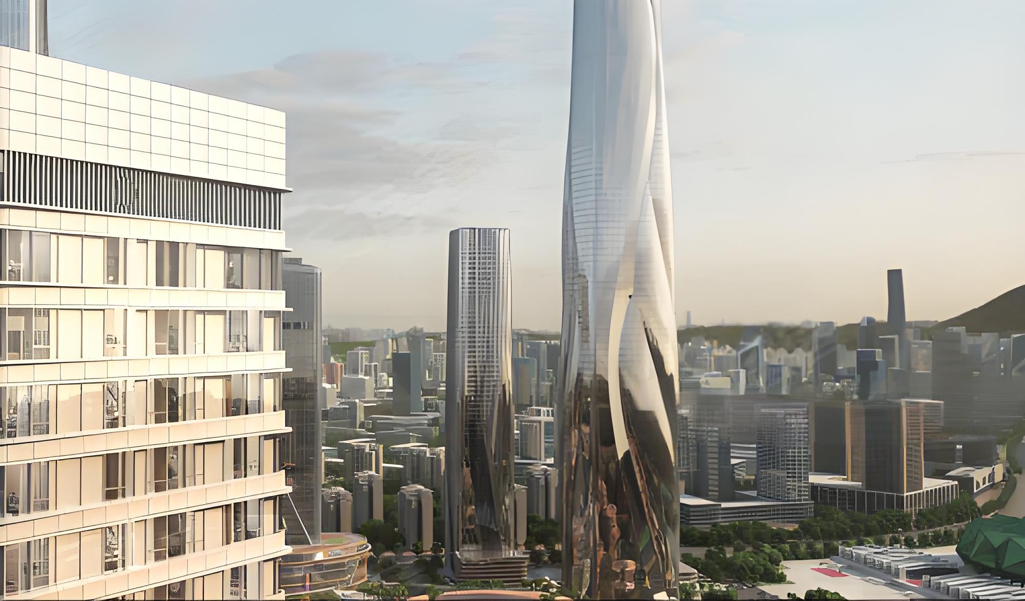 在世茂曾經的版圖裏,深港國際中心絕對是個標竿項目。2017年239億拿地時,不僅是世茂單體金額最大的項目,也創下了深圳土拍總價第二高的紀錄。整個項目用地面積32萬平方米,包括14宗建築用地,核心建築是深港國際中心。世茂原計劃投入400-500億元,建成一幢高度超過上海中心的700米“中國第一高樓”,2022年債務危機爆發後,項目停了下來。