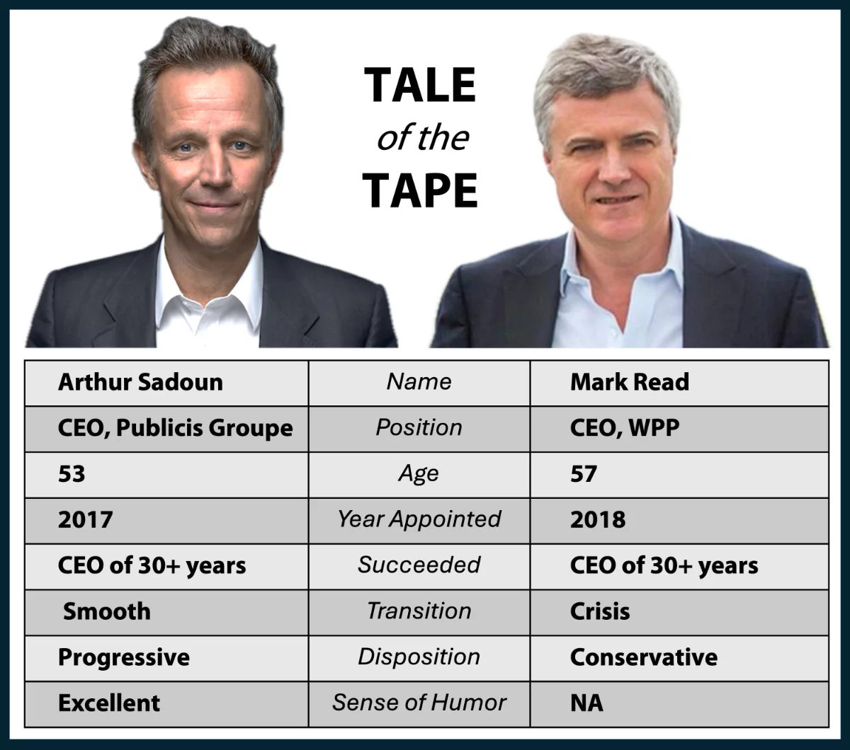 自然有宏觀經濟不景氣的背景因素,但當你看到可口可樂、輝瑞這樣的核心客户逐步被對手挖走,看到北美市場份額連續幾個季度下滑,WPP就不能把所有問題甩給大環境。一邊是財報會場上不斷上調預期的Sadoun,一邊是電話另一端謹慎措辭的Mark Read。説來也是很有意思。Sadoun於 2017 年加入陽獅集團,Read在2018年入職WPP,他們都是接替了在兩家公司任職超過 30 年的前任,都是在低谷中肩負轉型重任的CEO。