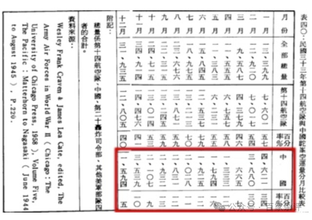 1944年,駝峯航線最繁忙的一年,但張其昀《抗日戰史》記載:中國獲得的物資比例最低為5%、最高34%,整體也就略高於10%,大概也就11%出頭、不到12%。其中,1、2月獲得物資比例看似較高,但這兩個月物資運輸量較少,實際獲得的物資總量並不高。