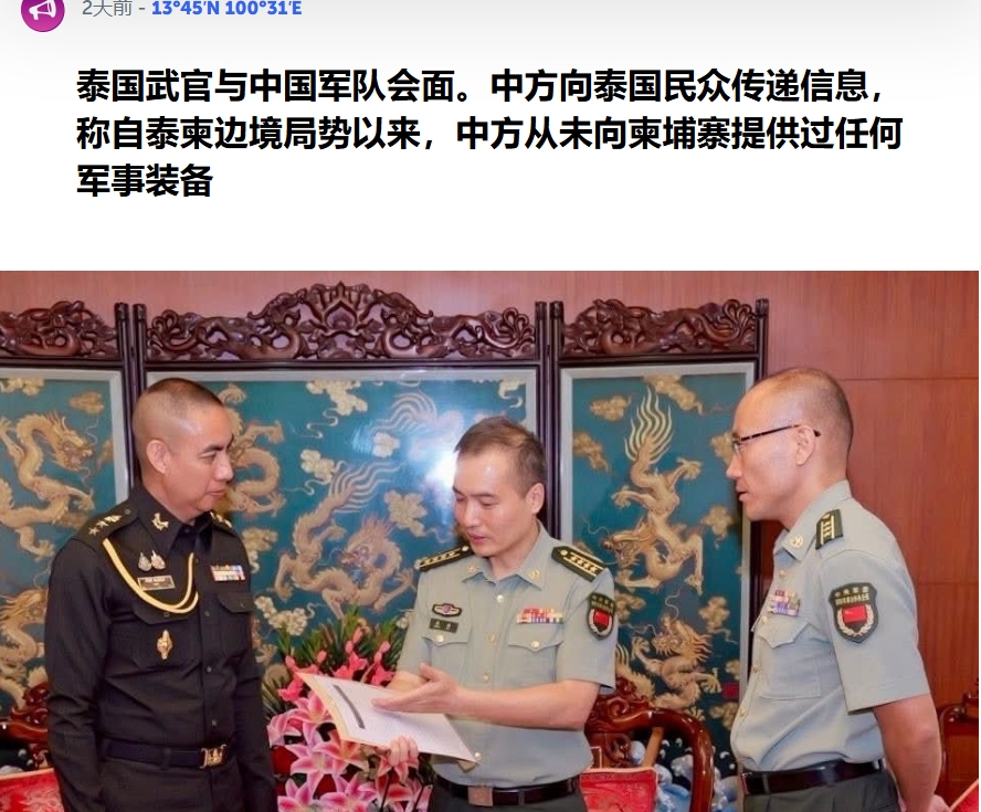有越南網友表示柬埔寨洪森得到了一批外星武器,還有説從地底下挖出了一批武器。但是目前泰國宣稱泰國武官和中國軍隊官員會晤時,後者表示自泰緬邊境局勢以來,中方從未向柬埔寨提供過任何軍事裝備。